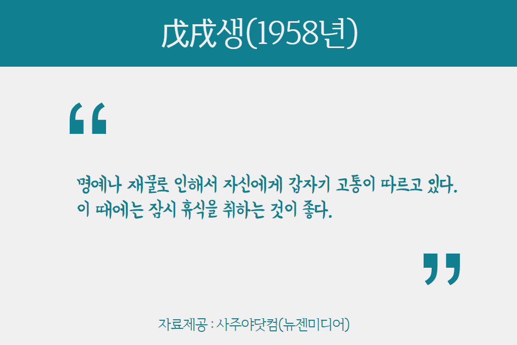 명예나 재물로 인해서 자신에게 갑자기 고통이 따르고 있다.